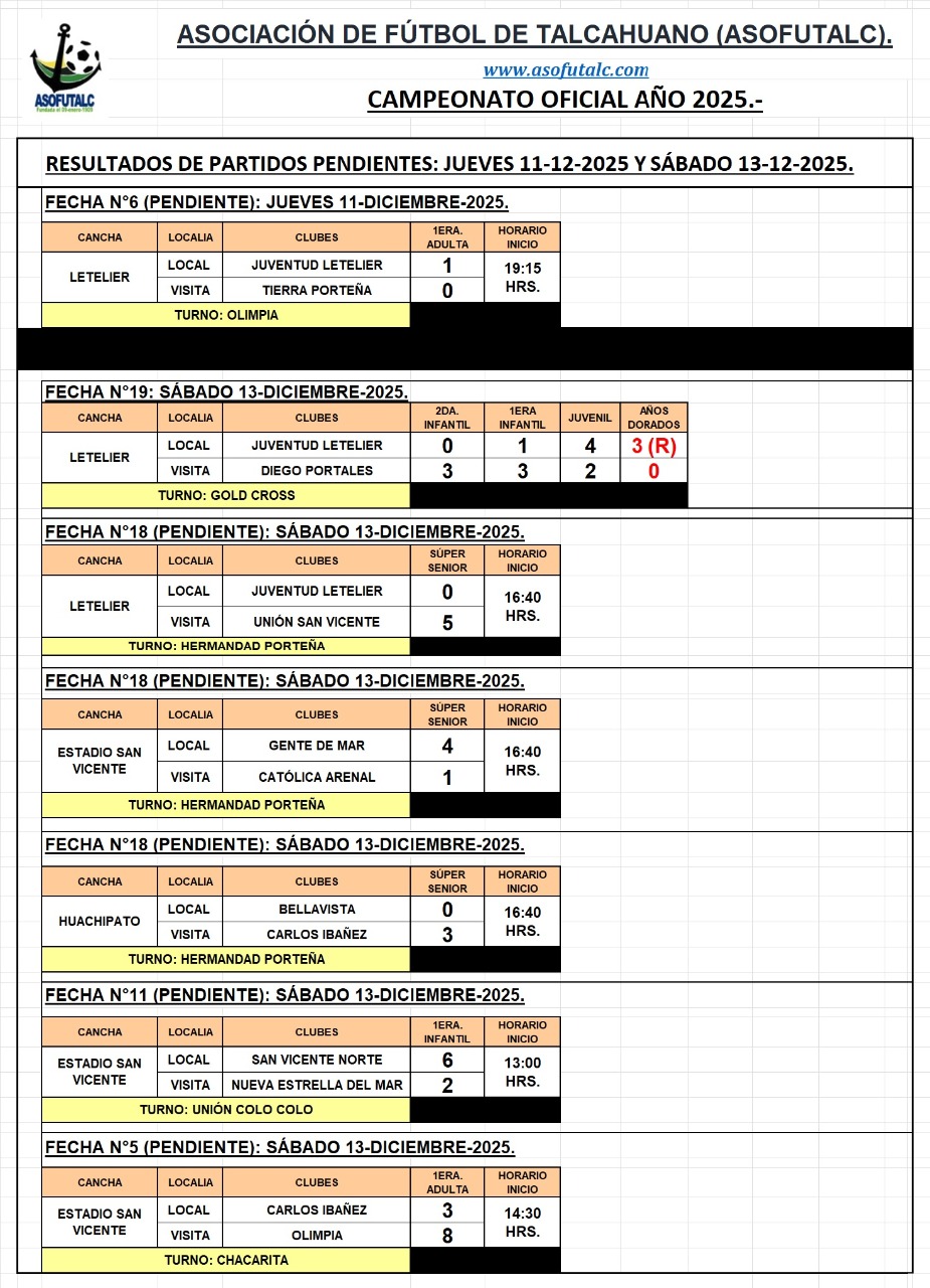 Resultados Partidos Pendientes jueves 11 y sábado 13-12-25.