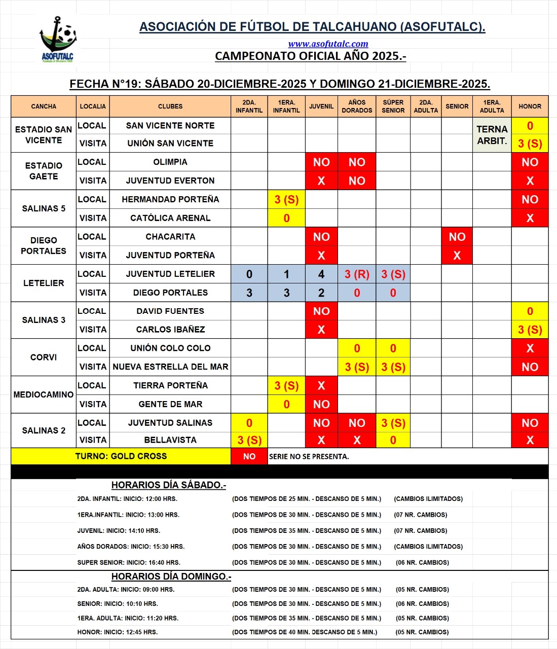 Programación Fecha N°19: sábado 20 y domingo 21-12-2025.