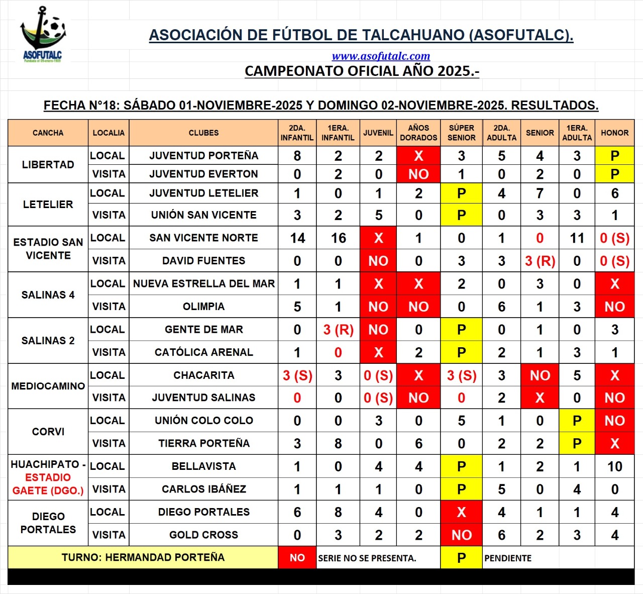 Resultados de la Fecha N°18; sábado 01 y domingo 02-noviembre-25.-