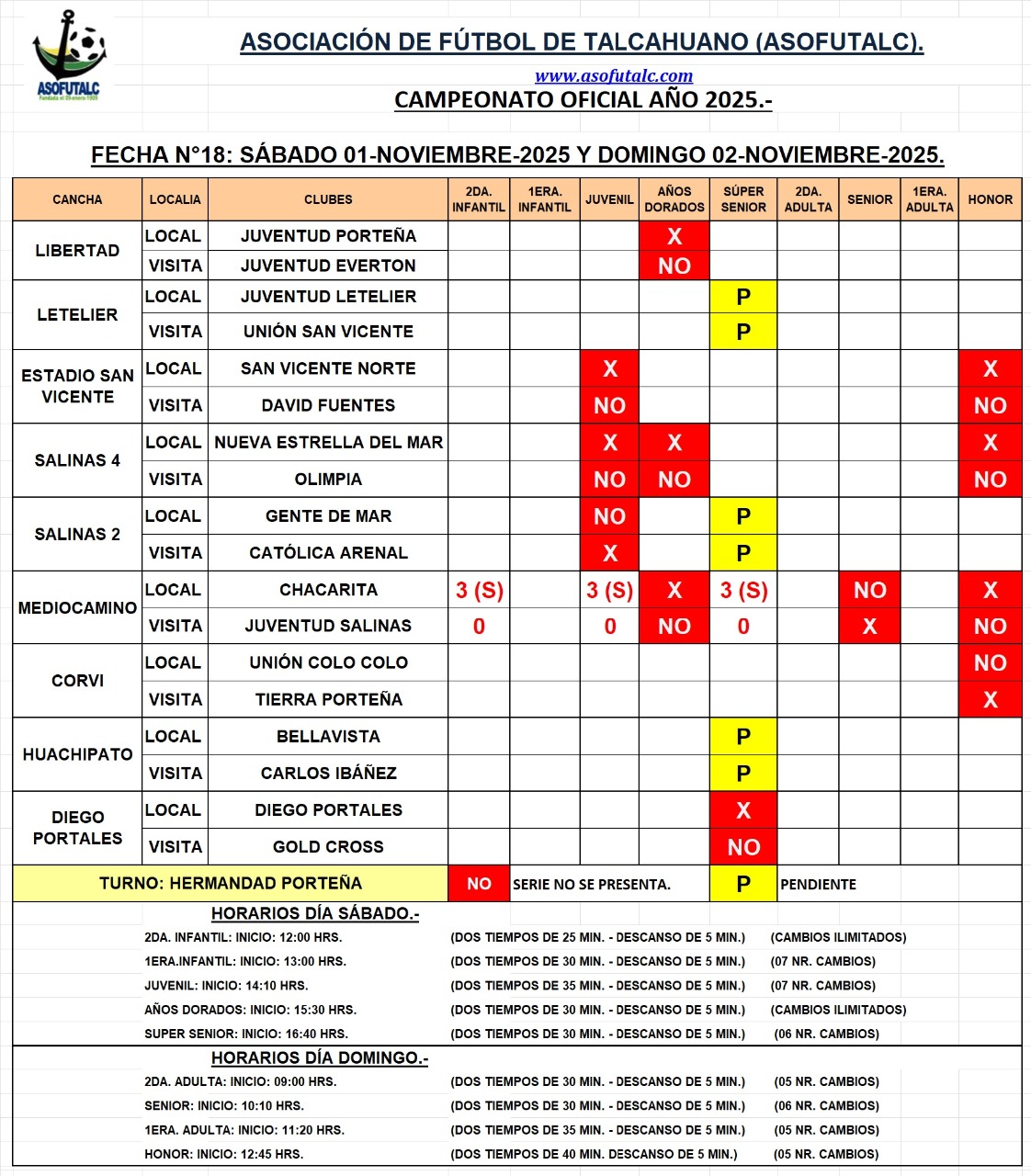 Programación de la Fecha N°18; sábado 01 y domingo 02-noviembre-25.-