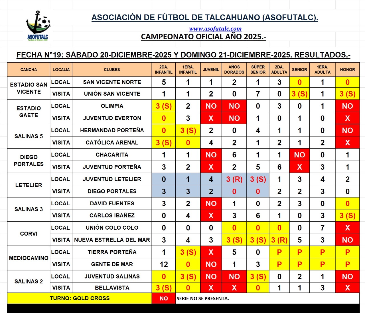 Resultados Fecha N°19: sábado 20 y domingo 21-12-2025.